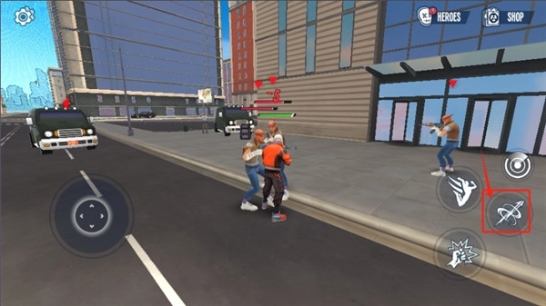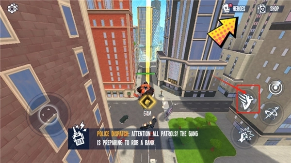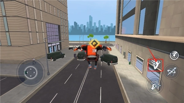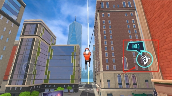3、还是这个按钮,我们长按它就能发射蛛丝,在城市里穿梭移动,通常是用来赶路的。