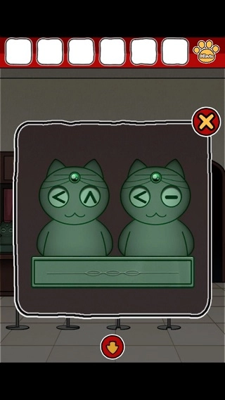 解读猫形石雕:在售票窗口旁边,那只猫形装饰的双眼能随人的心念转动。请留意前方隔离护栏的底座,它的开口朝向就是提示。把猫眼按照【左右下下】的顺序调整排列。
