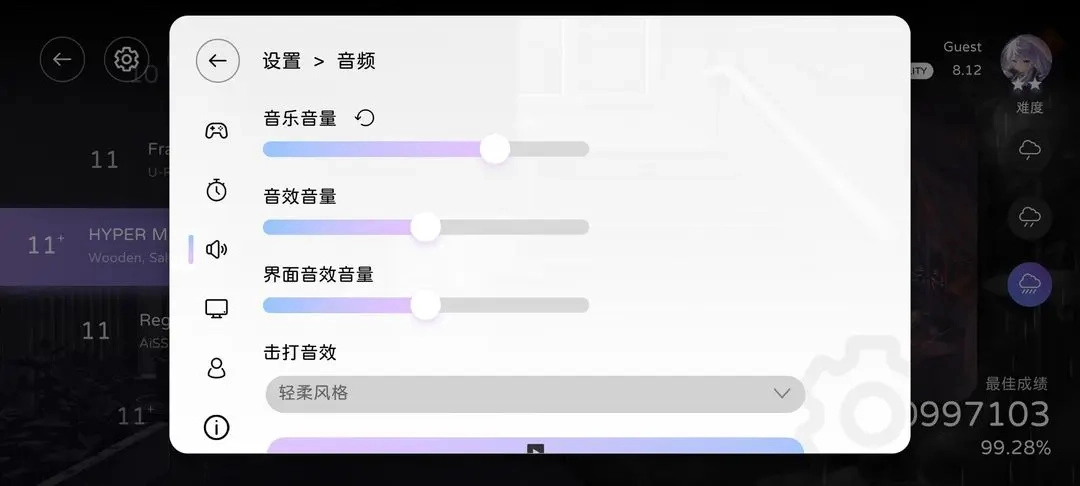 禁用击打音效顾名思义,建议玩家在偏移较高的时候开启。
