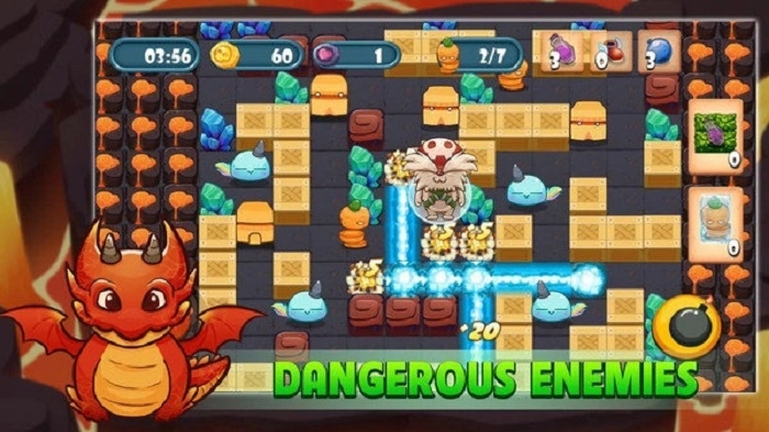 2、采用卡通风格打造的画面场景,搭配超有趣的炸弹人闯关玩法,助力玩家击败更多怪物。