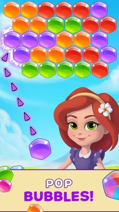 一款卡通风格的休闲闯关游戏,玩法是向屏幕上方发射彩色泡泡,把相同颜色的泡泡发射到对应位置就能消除它们,连续消除时还会触发爆炸式消除效果,游戏节奏会逐渐加快,你能挑战越来越难的关卡吗?