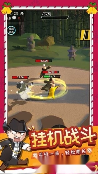这是一款主打国风武术的硬派动作乱斗游戏,采用沙雕搞怪的橡皮人画风,操作上搭载自动战斗模式——自动寻敌、自动连招,玩家只需点击两个按键,就能释放酷炫招式,把敌人打得七零八落。游戏延续了经典的角色设定,依旧以一代功夫宗师李小龙先生为核心,每次释放动作时,都能听到标志性的“喔!呀!”呐喊;此外还有霍元甲、叶问、黄飞鸿等武术大师化身的梦幻角色加盟。幽默无厘头的动作设计让整体风格充满魔性,连技能特效都透着欢快劲儿。融入Roguelike元素后,随机关卡与随机技能让每次挑战都截然不同,搭配每关可选的随机技能,玩家能充分体验随机刺激带来的无尽乐趣!