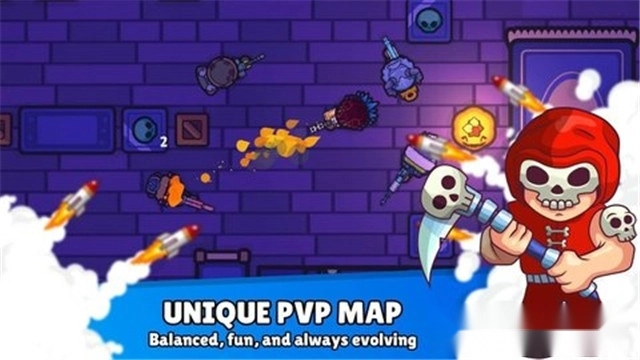 4、武器种族玩法:使用小地图,对局中无战利品掉落,通过击败对手来升级你的武器,目标是成为首个用最终武器消灭对手的玩家。