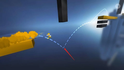 2、完成跳跃动作后,用右手拇指点击并按住屏幕,能够实现更高更远的跳跃效果,待抵达轨道后再松开拇指即可。