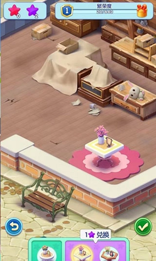 每次通过关卡都能获得对应的星星,消耗每一颗小星星就可以兑换精美的装修家具。
