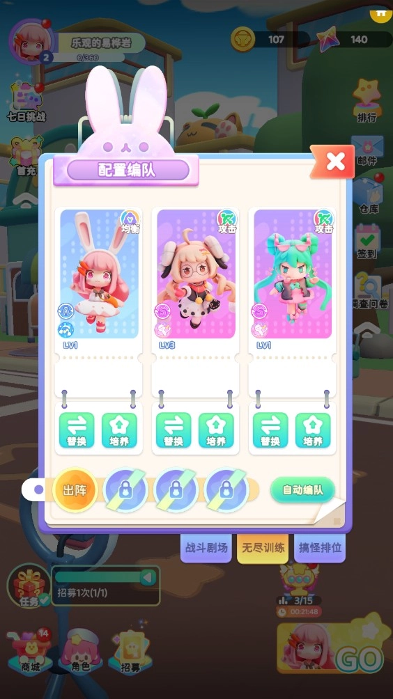 开启挑战前,我们可以去编辑自己的跑酷小队,最多可以上3个人。
