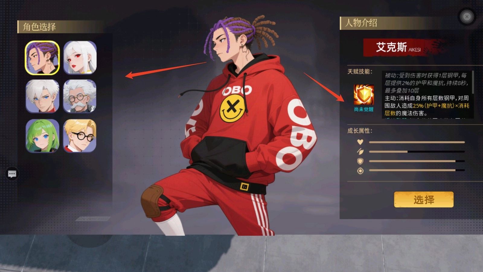 当前版本提供六个可选角色,每个角色都具备独特的天赋技能,玩家可根据个人喜好自由选择。