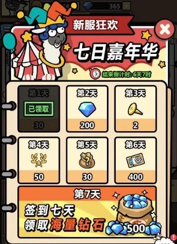 玩家们刚刚进入服务器的时候会有新服狂欢七天嘉年华活动,只要累积登录七天就能能够获得海量的钻石奖励以及各种道具奖励,都是玩家们在前期必备的奖励,快到游戏中去试试看吧。