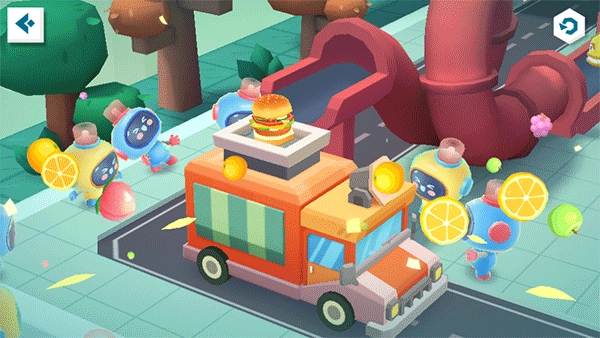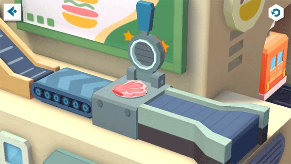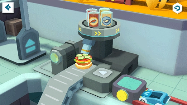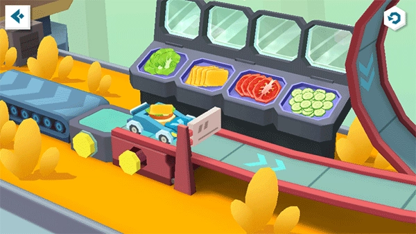 就差最后一步啦——把面包盖加上去,美味的汉堡马上就要做好咯!不过还有个小小的挑战等着呢——得通过趣味弹球桌:宝宝快让弹跳格动起来,让汉堡进到弹球桌里,滚起来吧!