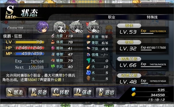 游戏里能够自由切换职业,让你不再受职业限制,在转职界面中,你可以查看各个职业的特性、成长情况以及技能。