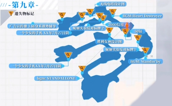 【胜利女神设计图】光点(遗失物品)的位置如下:在第九章地图下半部分左侧的拐角处,具体来说,就是从传送门出来后往右走一点的坦克废墟旁边(此位置在9-15关卡之前)。