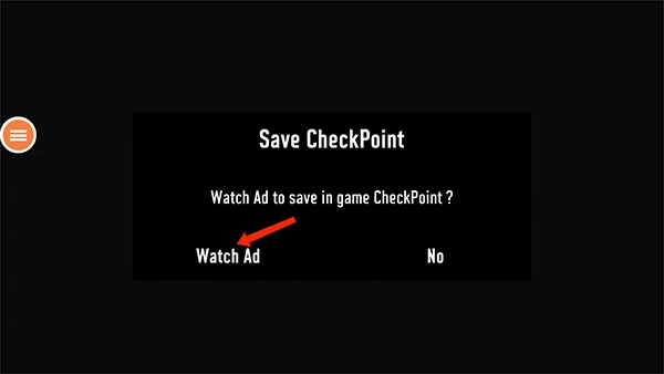 点击后,系统会弹出【Save Checkpoint】保存检查点的提示,此时点击【Watch Ad】就能完成存档操作。