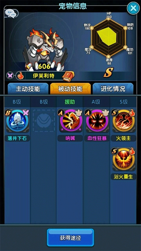 伊芙利特,是主打暴力,需要技能蓄力的宠物。惧怕解buff的技能,连击宠,控制流,必闪流。