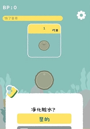 1、游戏开始时,我们得到的是虚无鱼BasPi的鱼卵形态,此时只需净化脏水,之后耐心等待它孵化即可。