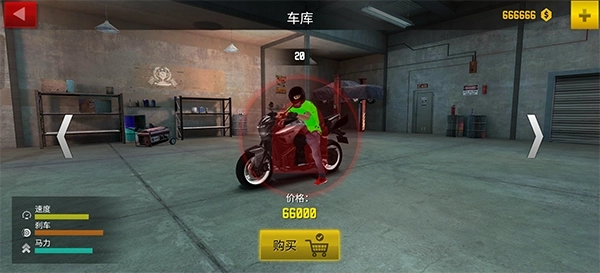 2、初次进入游戏时,系统会直接赠送66万游戏货币,这些货币可用于解锁和购买各类摩托车。