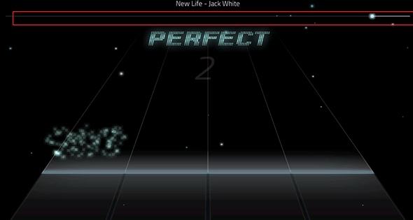5、进入游戏后,游戏界面会自动转为横屏模式,其玩法和节奏大师类似,屏幕上方会呈现出歌曲的进度条。
