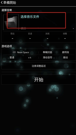 2、在游戏界面里点击“选择音乐文件”,即可进入音乐挑选页面。