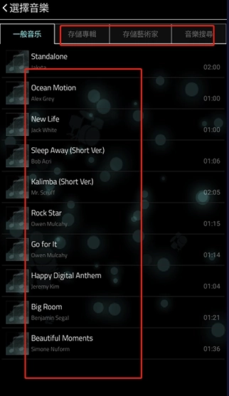 3、在页面中,既可以看到游戏自带的各类音乐,也能够选择手机本地音乐,并且无需手动导入,系统会自动识别并获取这些本地音乐。