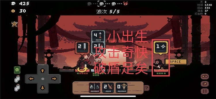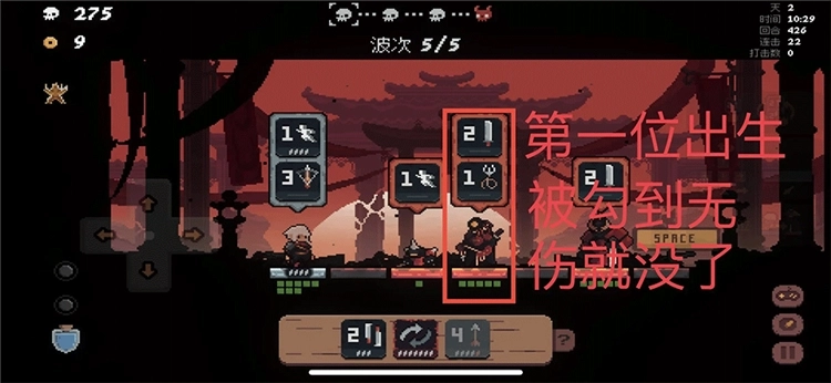 这个关卡新加入了5血的大刀怪,战斗过程中要留意借助移动对冲来调整自身位置,防止被敌人堵在墙角从而陷入被动局面。