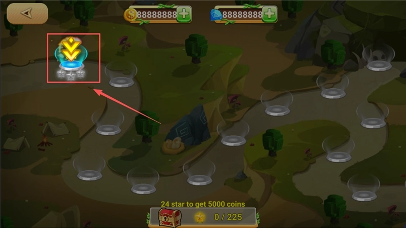 3、在关卡地图里,要留意左上方黄色箭头所指的方向,另外完成收集星星这类小目标还能得到额外奖励。