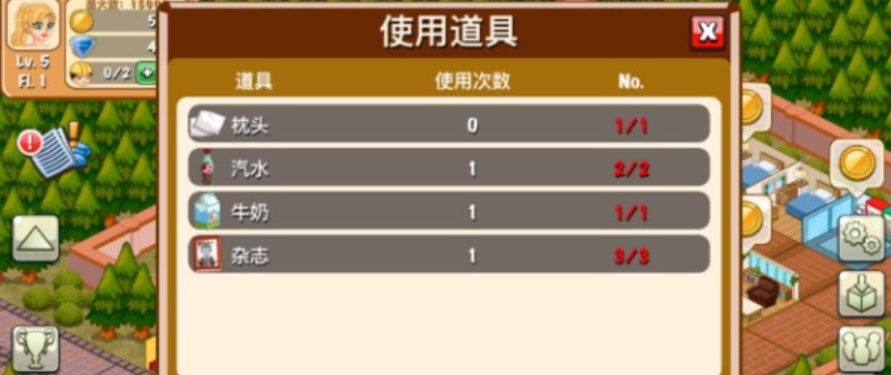 PS:道具能在外面的红色小屋里购买,偶尔也会有客人捡到一些道具交给你。