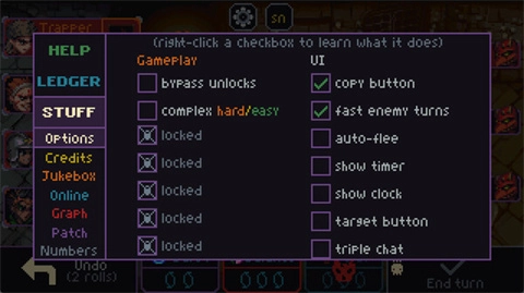在游戏里,打开游戏内的英雄图鉴(ledger–>hero,图录->英雄),部分英雄头像的角落会有紫色标记,点击头像后会显示“seen this run(本局战斗中已遇到过)”,这类英雄就是被刷掉的英雄。升级时随机不会出现见过的英雄,也不会出现升级选项里的英雄。可以利用这个机制来决定是否随机。