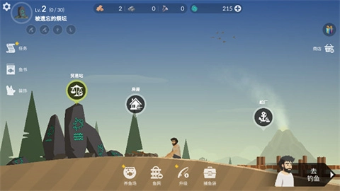 玩家需要通过钓鱼来获取资源,换取工具与获得钻石