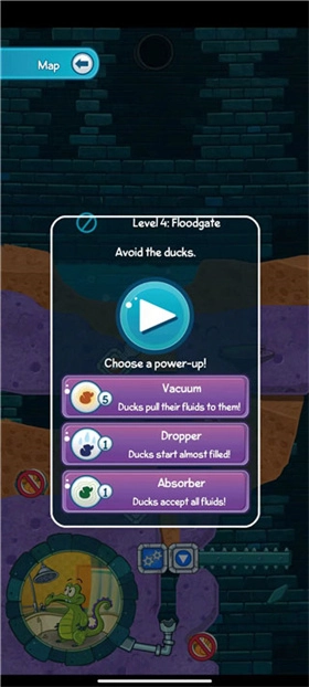 你可以选择自己要挑战的关卡,像图里展示的那样,关卡分为两种模式:一种是常规玩法,要求把水分给鸭子;另一种则是特殊玩法,规则是不能让鸭子接触到水。