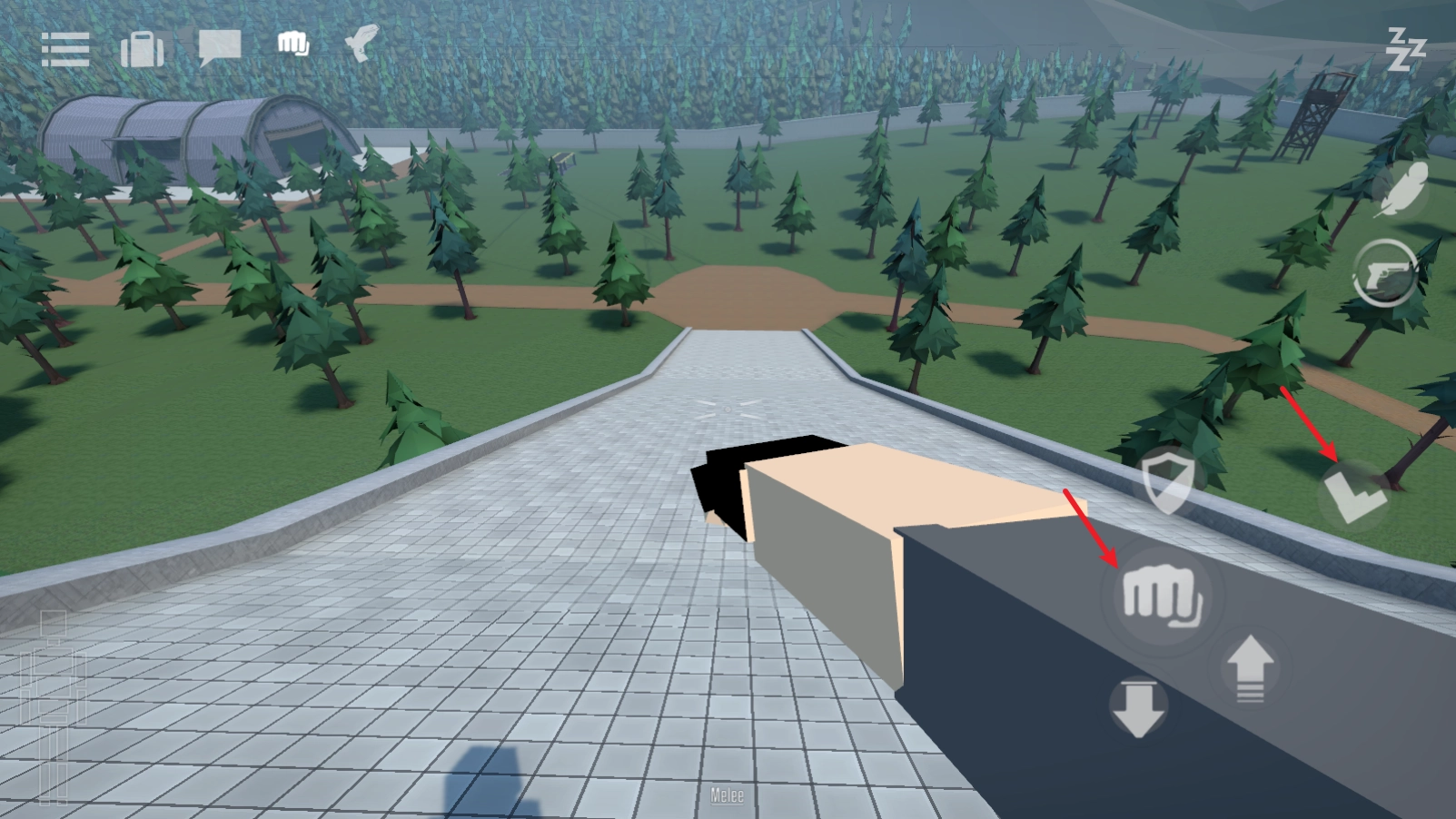 当靠近可拾取的武器时,右侧会弹出交互按钮,长按该按钮即可将武器拿在手中。