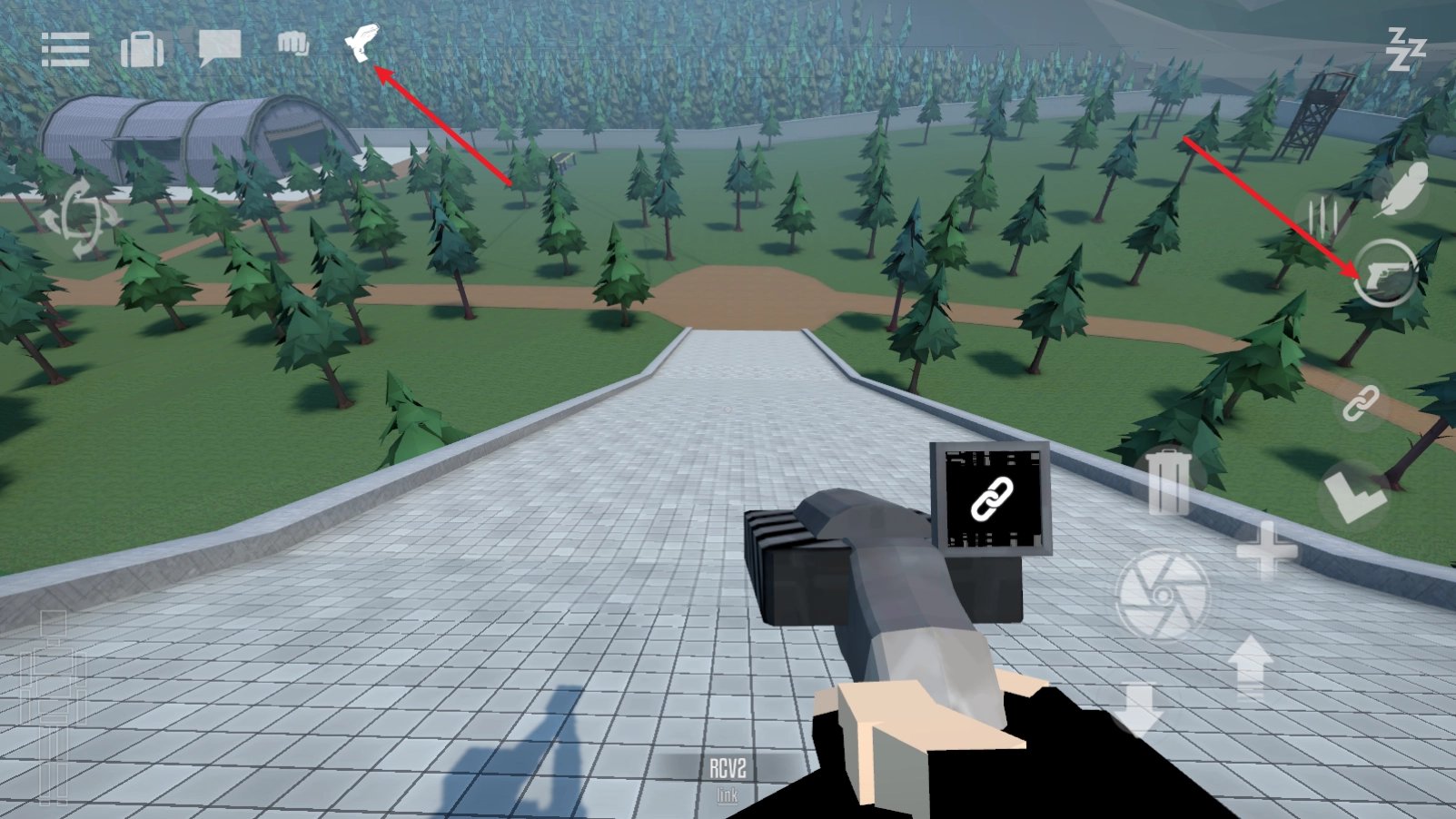 你可以通过右侧的手枪键或者左上角的按钮来切换武器,比如切换到手枪后就能进行射击操作了。