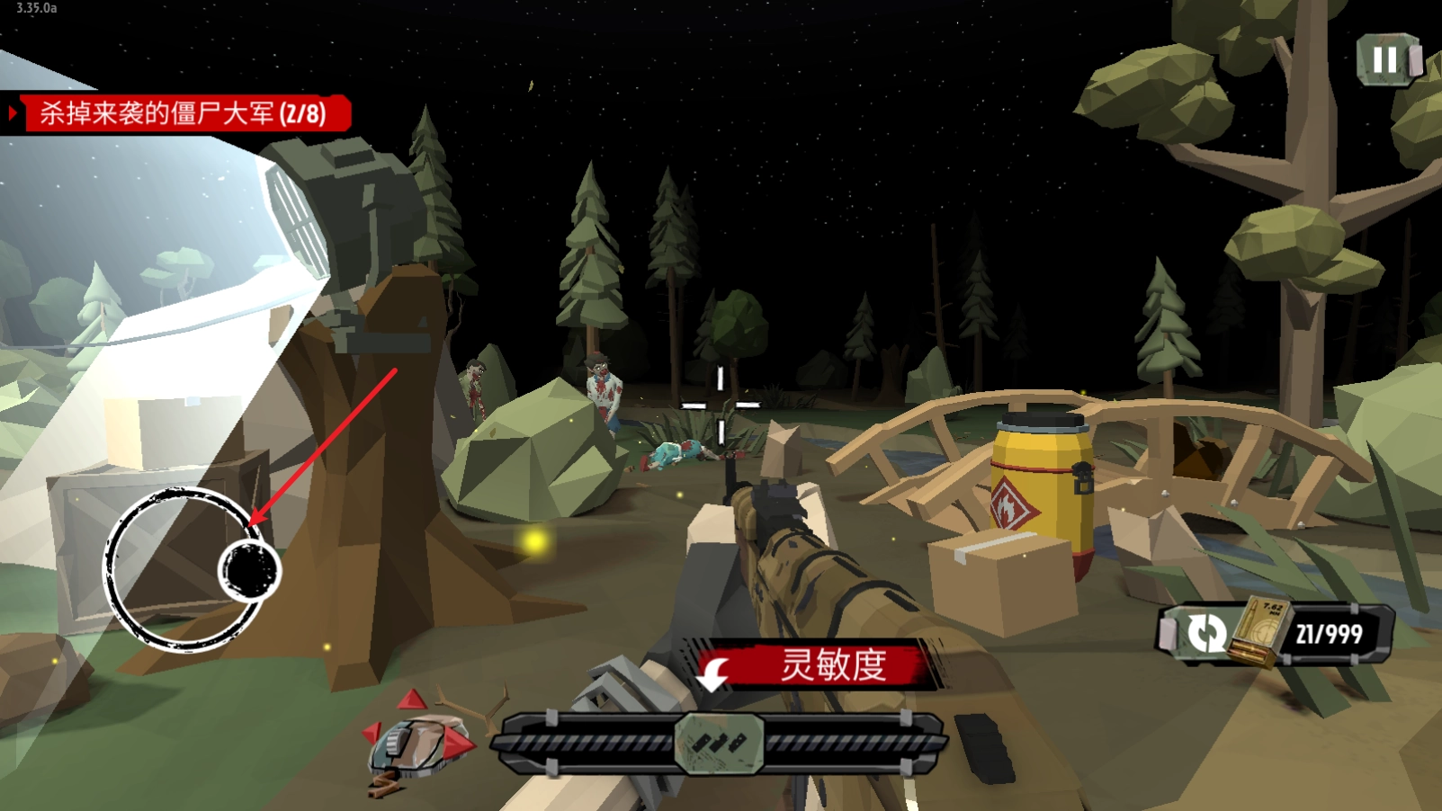 瞄准僵尸后就能够进行射击了。