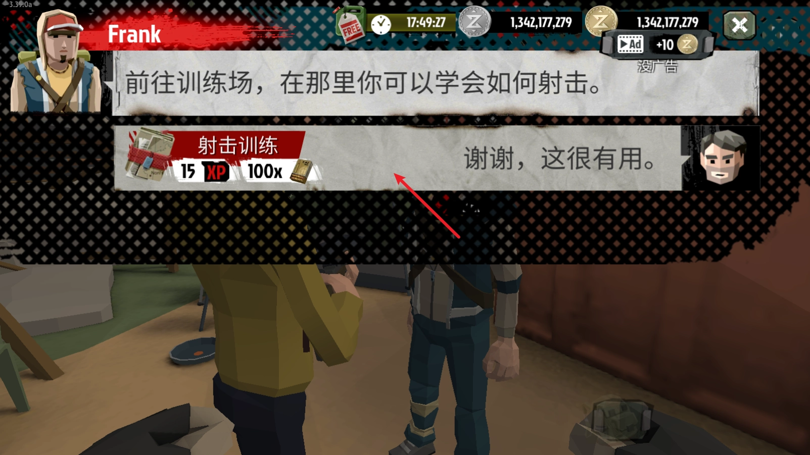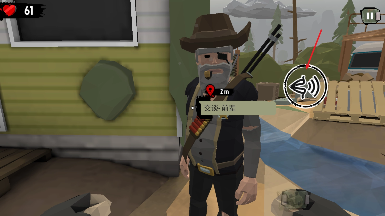回到营地中,我们需要靠近人物来进行交互。
