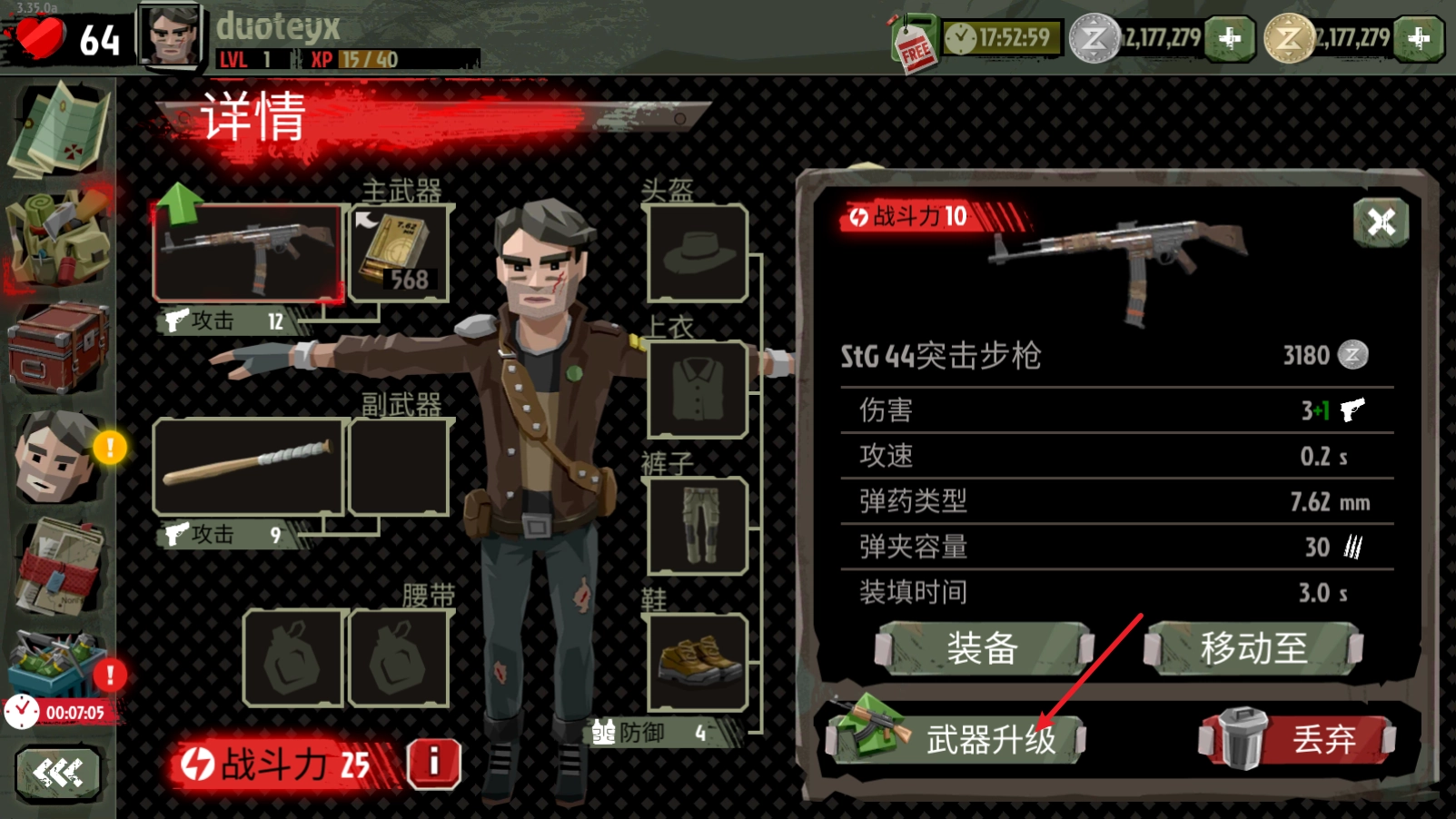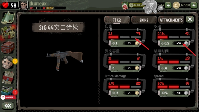 选中武器还能够去升级武器的属性。
