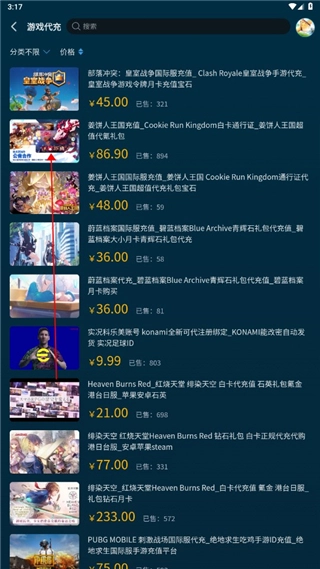 3、注册成功后登录用户在选需要购买的游戏商品;