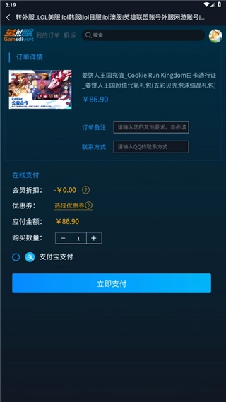 5、付款成功后,请将游戏账号及密码、游戏ID、当前账户余额发送给在线客服,客服会将这些信息转交至负责发货的客服人员。订单完成后,我们会在网站后台标记发货完成,或通过会话通知您相关情况。