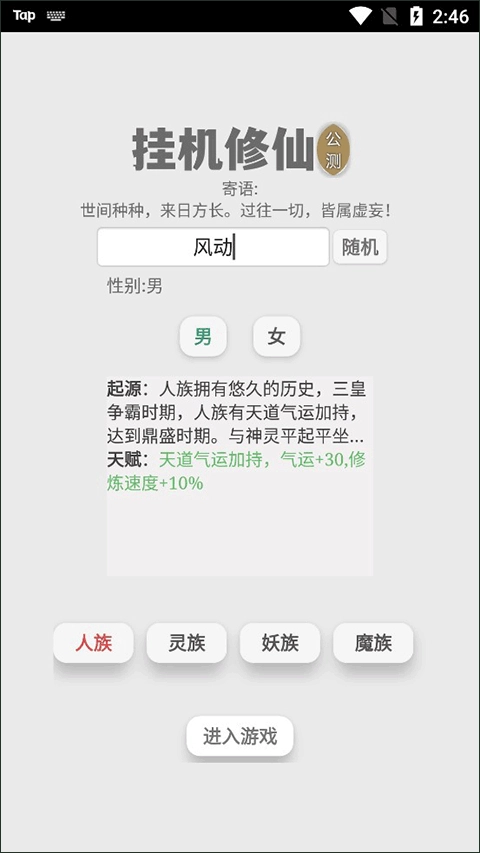 首先确定自己的名字并挑选种族,任何种族都可以选择,不同种族之间仅在天赋上存在差异,其他方面并无不同。