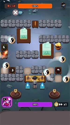 游戏界面下方设有多个法宝,每个法宝占用的格子数量各不相同。在选择放置位置前,需要仔细思考,力求将它们放在最恰当的地方。
