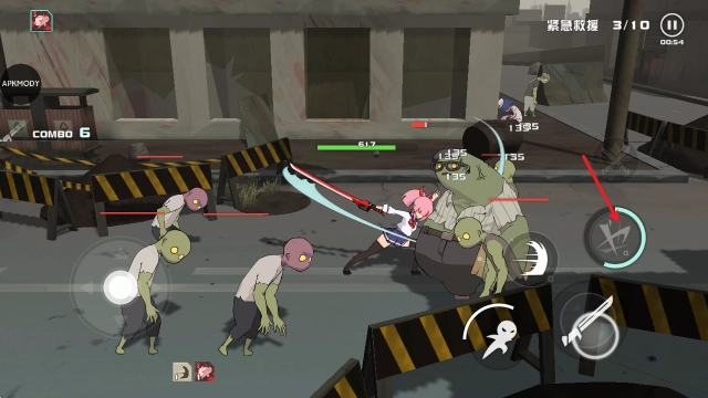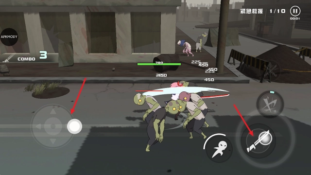游戏开始后,拖动左侧摇杆操控角色移动,点击右侧按钮即可发起攻击。