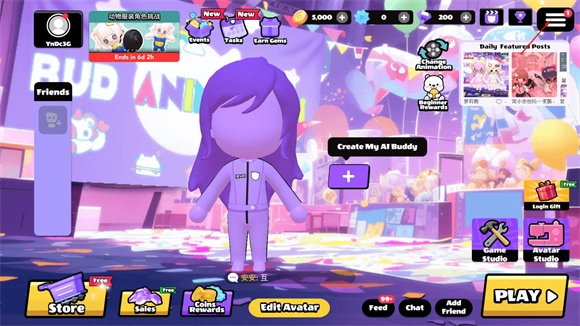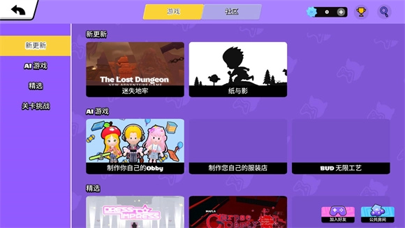 玩家还可以自行创建游戏,具体操作是点击界面右下角的游戏工作室,接着选择编辑游戏,之后就能借助各类模板来搭建游戏;要是在制作过程中遇到疑问,可点击创新任务,通过对应的教程来学习游戏制作的方法。