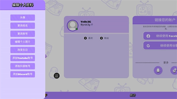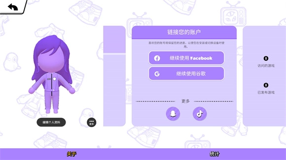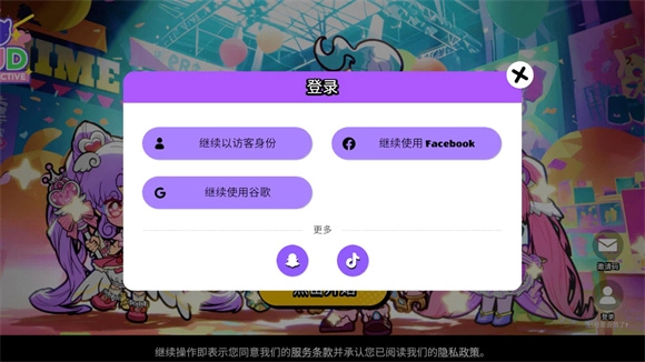 此时会弹出登录界面,游戏提供游客、脸书、谷歌、抖音、snapchat五种登录方式,选择对应的方式并输入账号密码即可完成登录。