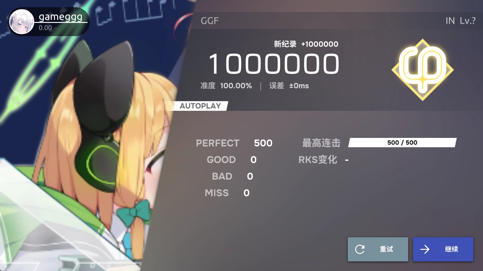 歌曲结束后就会结算你的分数了。