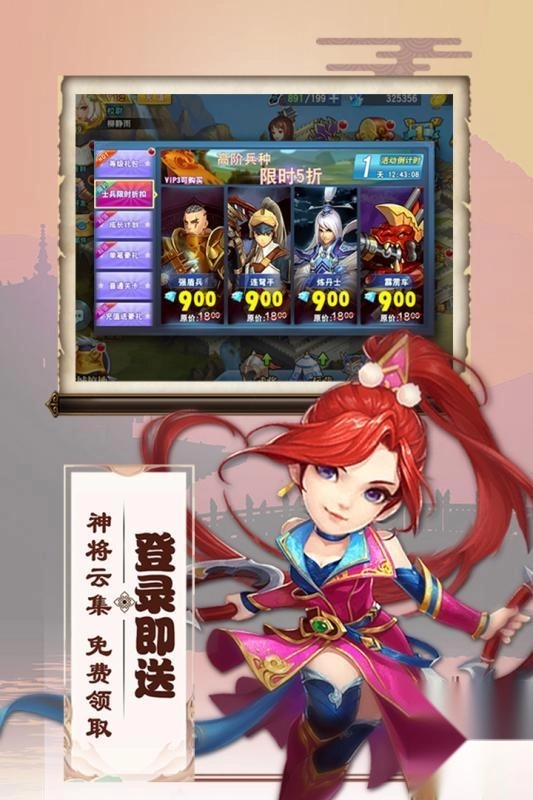 1、登陆即送三国名将,帮你争天下。