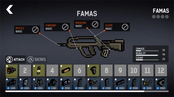 3、游戏里每个武器的零件都能购买,不过前期玩家可能没那么多金币,不妨先玩上两盘攒攒钱。