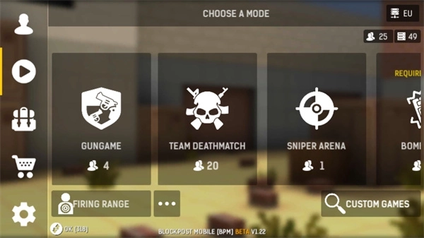 碉堡射击是一款像素风格的第一人称射击游戏,英文名为BLOCKPOST MOBILE,融合了快节奏枪战与战术玩法。玩家可以挑选心仪的英雄参与战斗,在新版的碉堡射击英雄模式中完成爆破、占点、生存等多样化任务,还能自由组合武器与配件,打造专属于自己的战斗风格,尽情感受像素枪战带来的刺激与乐趣!