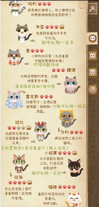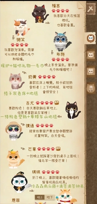 和猫咪互动、完成任务来收集图鉴碎片,就能解锁猫咪图鉴与家具图鉴,另外还有隐藏家具等待探索。
