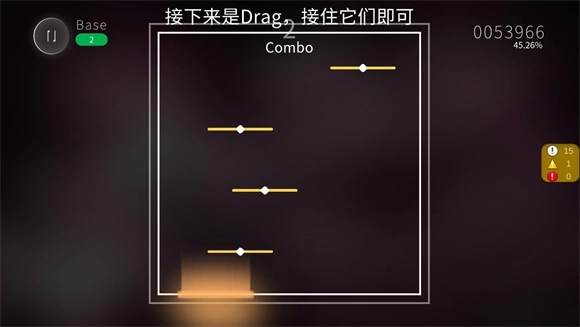 4、Drag拖拽音符:当音符滑动到判定区域时,要精准接住并跟着它的轨迹移动,提升操作的动态感。
