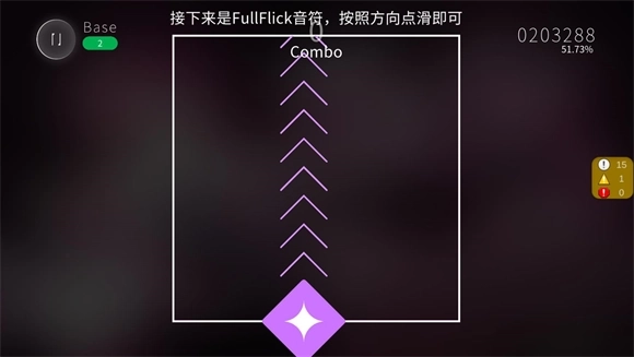 5、FullFlick音符:按照屏幕提示的方向快速滑动操作,方向包括上下左右以及斜向等,为玩家带来更具灵动性的节奏挑战体验。