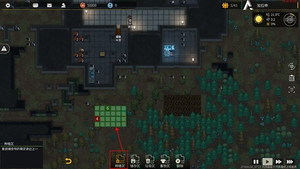 1、飞船迫降后,点击界面下方的种植区域开垦土地,借助种植与畜牧来满足初期的生存需求。
