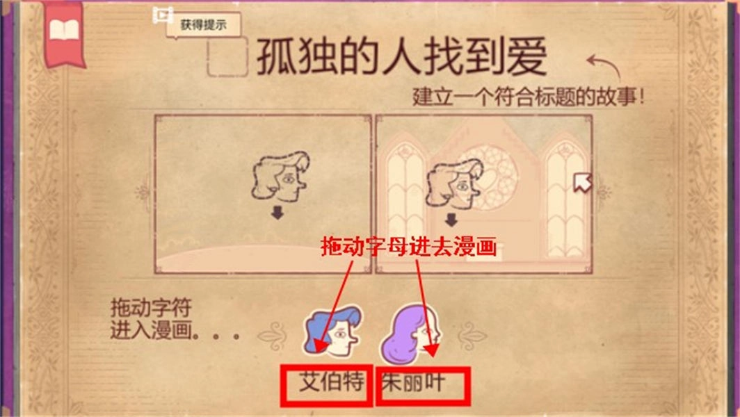 3. 正式进入游戏后,玩家需拖动字符放入漫画中,接着构建一个和标题相契合的故事。