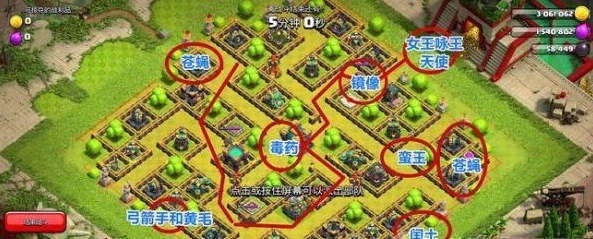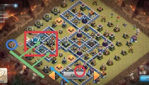 1、魔趣网大致规划出了大部队的行进路线:女王搭配咏王作为进攻核心,冰人随后跟上承担第一个投石炮的伤害,镜像法术要留给天使,蛮王与闰土在中途入场,选择的时机是女王和咏王扛住大本营伤害之后;其余兵种可依据实际战况灵活安排,最后会剩余不少部队,大家不用担忧兵力不足的问题。